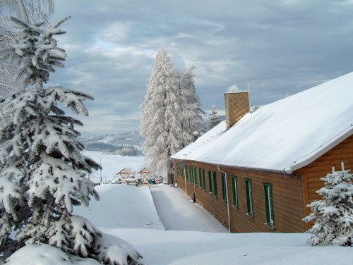 | Unsere Hüttenteichbaude bietet Platz für 46 Personen (Aufbettungen möglich. Verfügbar sind fünf Zwei- bzw. Vierbettzimmer mit eigener Dusche/WC und fünf Sechsbettzimmer mit Gemeinschafts-Sanitärräumen. Unser gemütlicher Hüttensaal, oder die Baudenstube stehen Ihnen während Ihres Aufenthaltes zur Verfügung. Es warten ein uriges Kaminzimmer und überdachte Grillplätze auf Sie. Von Frühstück, über Halbpension, Vollverpflegung, auch Buffett-Varianten - alles ist möglich.