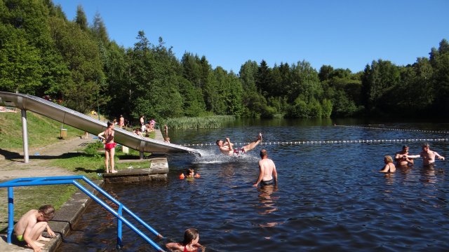 Die Einrichtungen, die um den Hüttenteich angelegt wurden, ermöglichen einen Aufenthalt und Badebetrieb, ohne die natürlichen Ressourcen zu belasten. Die Wasseraufbereitung findet hier auf rein biologischer Basis statt.